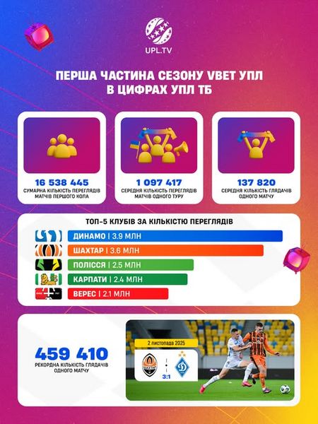 Українська Прем'єр-ліга розповіла про перегляди першої половини чемпіонату-2025/26.
