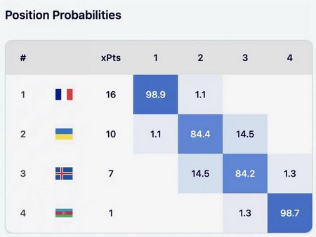 Перемога в один гол над Францією робить задачу надскладною – щоб компенсувати відставання по різниці, в останньому турі треба перемагати Ісландію з різницею на три голи більше, ніж французи обіграють Азербайджан.