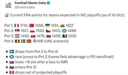 За певних обставин може випасти Молдова, однак після останніх результатів її обійшла саме Північна Ірландія.