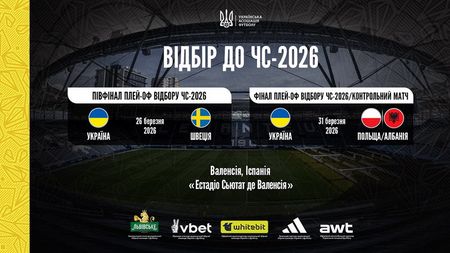 Потенційні два матчі плей-оф відбору ЧС-2026 збірна України проведе в іспанській Валенсії