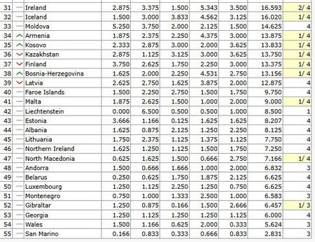 Це дало нагоду до когось наблизитися, когось не підпустити, когось не відпустити, а головне – когось випередити. Власне, добрий результат не може не приносити профіту – щільність занадто висока. Отже фіксуємо випередження Україною у загальній таблиці Азербайджану та Словенії – тепер вони відстають від нас на 0.1 та 0.132 бала відповідно. Наблизилися до Хорватії – на 0.25 бала. Представники перших двох країн програли, представники третьої країни на двох здобули одну нічию, тому такі зрушення.