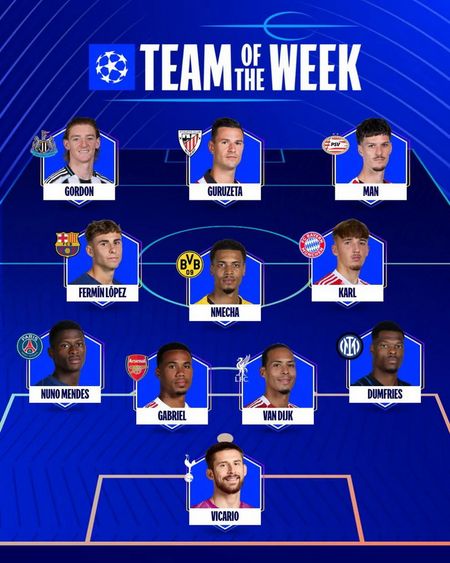 За підсумками 3-го туру Ліги чемпіонів до команди тижня від технічних спостерігачів УЄФА потрапили представники 11 різних клубів.