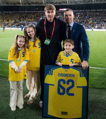 Президент УАФ Андрій Шевченко на стадіоні «Естадіо Сьютат де Валенсія» вручив екс-гравцю національної збірної України Сергію Сидорчуку пам’ятну футболку, на якій закарбувалася кількість матчів за головну команду країни.