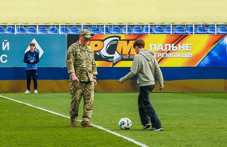 Другою подією стало виконання першого дотику до м’яча військовослужбовцем – почесну місію виконав полковник Збройних Сил України Віталій Бовкун. Він присвятив службі понад 31 рік, із 2014 року брав участь у бойових діях, зокрема пройшов бої за Дебальцеве, Маріуполь та Піски. Із початком повномасштабного вторгнення знову перебував на передовій, де отримав поранення та інвалідність ІІ групи.
